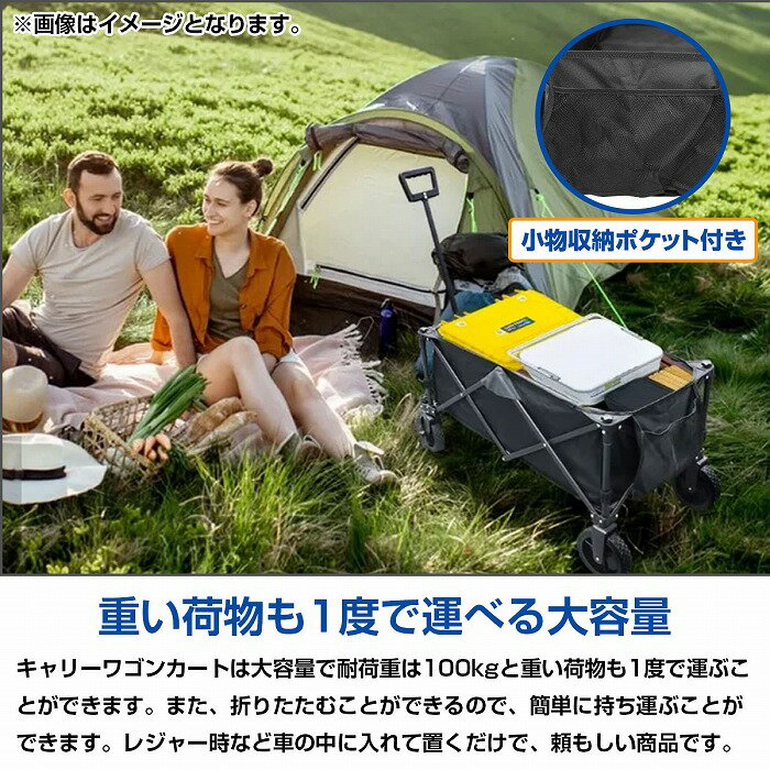 折りたたみ式でコンパクトに収納可能!アウトドアでキャンプやバーベキューはもちろん、お買いものや運搬時にとても便利な大容量キャリーカートです。